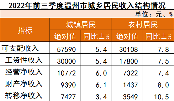 今天,国家统计局温州调查队发布了2022年前三季度温州市城乡居民收入情况报告。