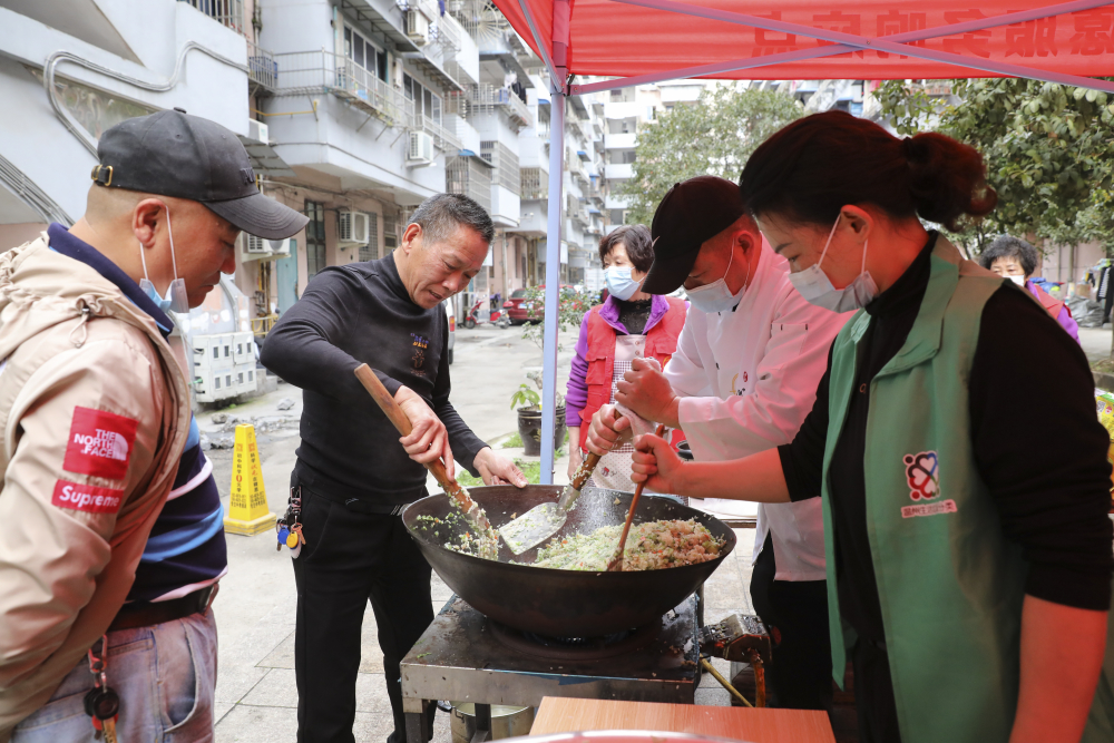 3月12日,新桥街道三浃社区开展 “迎亚运 邻里情”二月二炒芥菜饭活动,来自社区的党员、工会、妇联、社工以及爱心驿站志愿者一起动手,为居民送上一碗碗美味,在增进“邻里情”的同时,丰富社区居民的文化生活需求。
