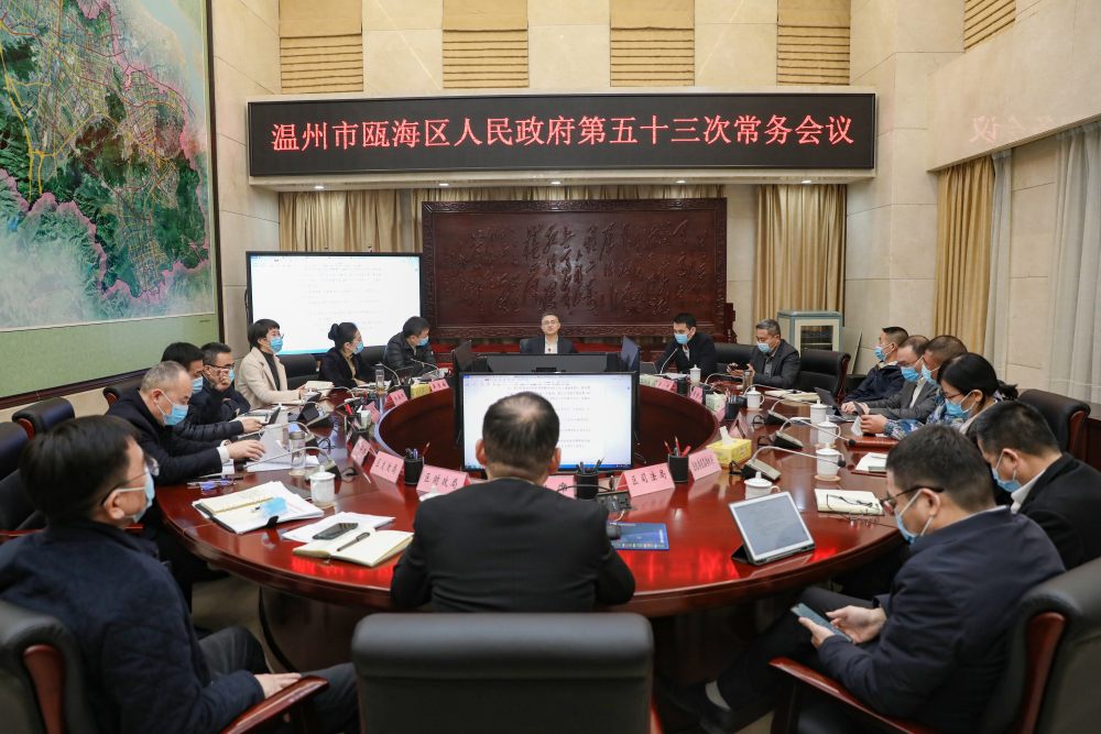 12月13日晚,瓯海区委副书记、代区长刘云峰主持召开区政府第五十三次常务会议。区政府领导林仕德、林照光、吴雪梅、王金法、余海燕、杜潘祚、张昶等参加会议,区人大常委会副主任潘小林、区政协副主席陈继林、区人武部部长李壮应邀列席会议。