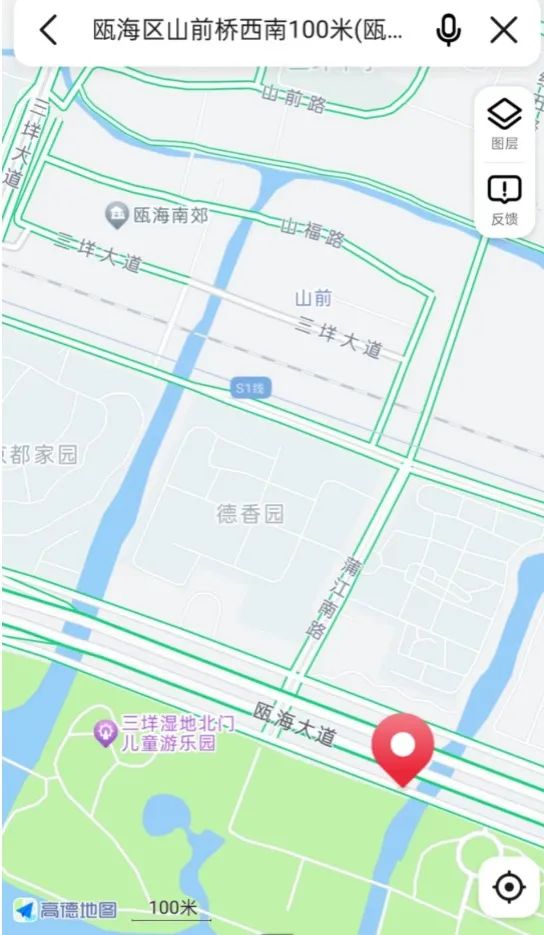 瓯海区山前桥西南100米(瓯海大道)