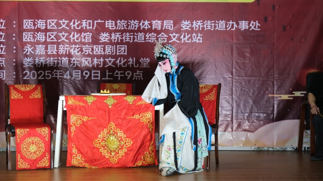 4月9日,“我们的中国梦——文化进万家”全民艺术普及送戏下乡活动走进瓯海区娄桥街道东风村文化礼堂。来自永嘉县的新花京瓯剧团为观众献上《莲花庵》这一经典剧目,让百姓在家门口畅享艺术盛宴。