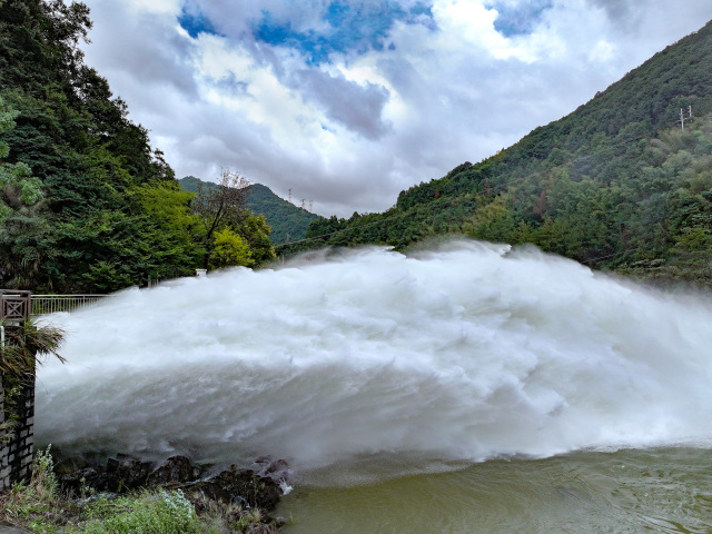 9月24日13时,瓯海泽雅水库水位达106.53米,蓄水量4449.1万立方米,超过控制蓄水位0.33米。水库已于11时开闸泄洪,下泄流量约50立方米/秒,应对超强台风“桦加沙”带来的强降雨影响。