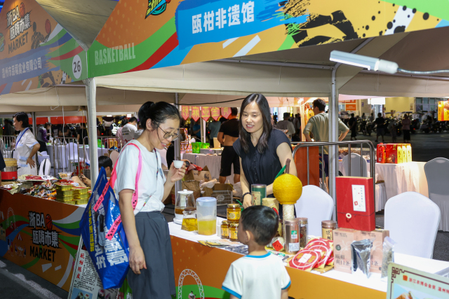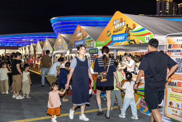近日,瓯海区奥体中心灯光璀璨,“浙BA”赛场之外美食非遗、温州土特产、瓯海特色产品等纷纷亮相,球迷更可观赛、休闲购物两不误。