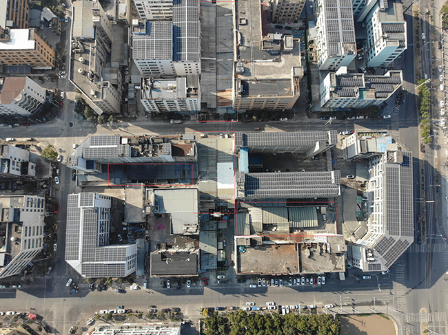 在这些园区内,原有的标准化厂房之间见缝插针地搭建起大量简易建筑,它们紧贴着主体厂房拔地而起,将国家《建筑设计防火规范》明确要求的消防间距占用殆尽,最窄处仅能容一人侧身通过。从航拍画面可以清晰看到,几个园区的交界处已被违建完全填满,形成一片连绵的“铁皮迷城”,连园区之间的边界都难以分辨。更令人忧心的是,原本规划用于大型消防车通行的环形通道,在这些违建的“蚕食”占用下,一旦发生火灾,消防车辆根本无法进入核心区域展开救援。