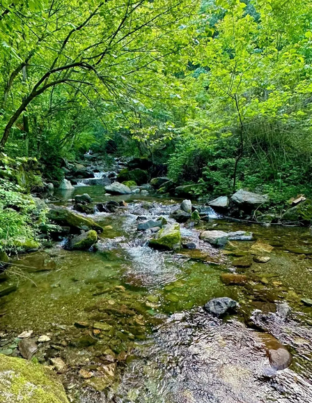 山脚的溪水覆盖在石头上,缓缓而行,不挣不抢,似乎世间没有东西会影响它们。它们和王维同频,“明月松间照,清泉石上流”,只有在大雨时流到李白笔下。梭罗在《瓦尔登湖》中将溪流视为自然智慧和生命流动的象征,赫拉克利特的“人不能两次踏入同一条河流”亦适用于小溪。