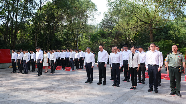 随后,全体人员面向革命烈士纪念墙三鞠躬,并缓步绕行,瞻仰革命烈士纪念墙,依次献上手中鲜花,深切缅怀革命烈士的历史功绩,向革命先烈表达无尽的哀思与崇高的敬意。