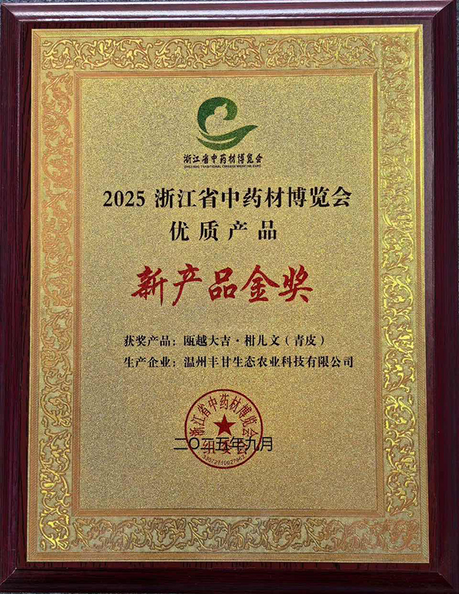 9月29日,在磐安开幕的2025浙江中药材博览会上,一款名为“瓯越大吉·柑儿文”的创新产品一举摘得博览会新产品金奖。这款由温州丰甘生态农业科技有限公司精心打造的特色产品,凭借其独特的文化创意与优良品质,成为开幕首日最引人注目的明星展品之一。