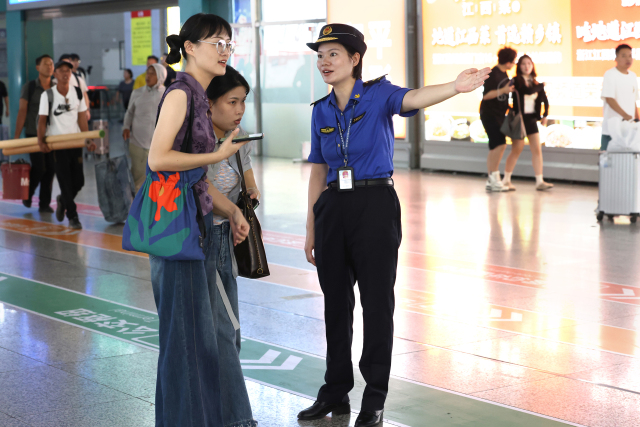 国庆期间,瓯海区铁路南站女子巡逻队坚守一线,以“柔性管理+服务”护航旅客出行。她们日均服务指引超千次,规范车辆停放、帮扶携带行李旅客、寻回失物,以细致服务提升站区秩序,成为国庆期间南站一道亮丽的风景线。