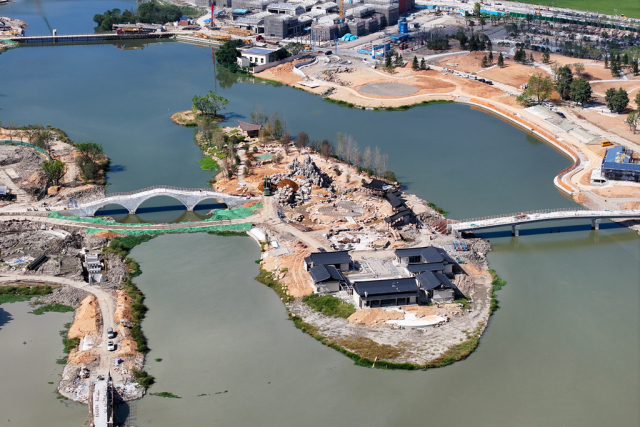 近日,温州园博园“瓯越园”主体外立面已完工,内饰装修和假山绿植施工正在推进,预计今年12月全部完工。瓯越园坐落于园博园北园的湖心岛屿,占地面积约12500平方米,以“瓯越古韵,山海相趣”为主题,采用“东西双园、两区六景”布局。西苑聚焦自然山水,东苑侧重人文雅趣,设有“戏韵荷风”“玉堂书香”等场景,巧妙融入谢灵运山水诗的意境。建成后,游客穿行其间,将能亲身漫步于一幅立体的江山胜览图中,感受千年瓯越穿越时空的永恒魅力。