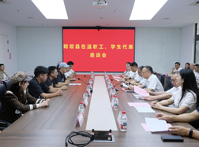 10月14日,阿坝县在温职工、学生代表座谈会在瓯海区召开,阿坝州委常委、阿坝县委书记冯峥勇率阿坝县党政代表团为在温就读的3名阿坝学生和35名务工人员送来家乡的关怀。瓯海区领导金衍光、金朝辉,阿坝县领导罗尔特、杜潘祚、王锋、陶丹、谢一璨等参加会议。