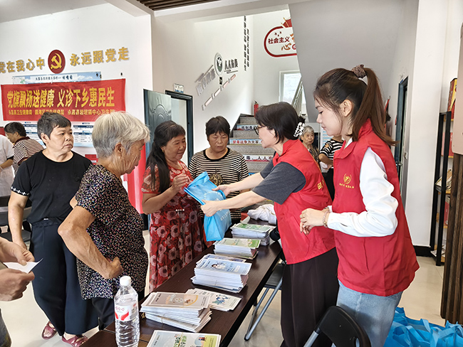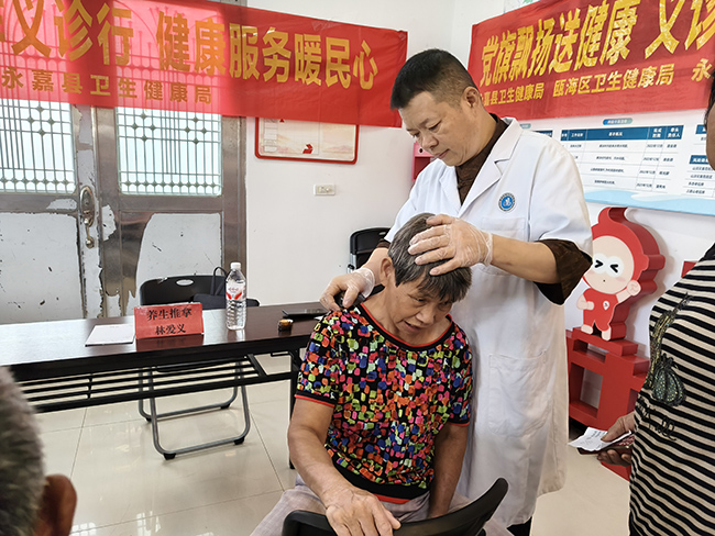 当天,村民早早来到现场有序排队候诊,医护人员耐心为村民测量血压、检测血糖以及针灸、推拿、理疗;针对老年人常见的高血压、关节炎、糖尿病等慢性病,全科医生细致问诊、答疑解惑,给予个性化的健康指导和饮食建议,并开处方、现场送药;工作人员还为前来看病的村民送上宣传品和健康手册。“我的背疼痛很久了,今天过来治疗了一下舒服了许多,这样的活动和服务真的是太好了!”65岁的村民潘里云老伯连连赞叹。