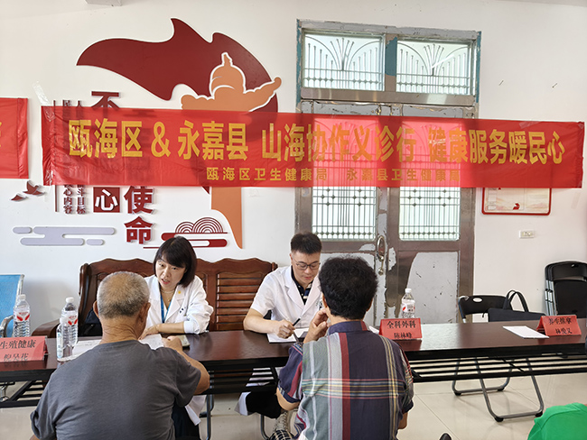 “从和永嘉结对以来,我们年年都会过来送健康送服务,群众反响挺热烈的,因为每次我们还会请到一些‘大咖’医生来参加,像今天就有配置一名来自温医大附一院的生殖健康方面的医生,大家都非常喜欢。”瓯海区卫生健康局工作人员戴娅怡介绍道。从2018年开始,瓯海区和永嘉县建立协作关系,瓯海区卫健局因地制宜、多措并举,通过座谈协议、参观学习、义诊服务、医疗帮扶、对口培训、建章立制等举措,积极推动两地在更宽领域、更深层次、更高水平上深化山海协作。2023年,双方就如何进一步深化两地卫健领域协作,推动两地卫生健康融合发展,实现互惠互利合作,展开深入沟通和探讨,并共同签订了《永嘉-瓯海山海协作工程卫健领域战略合作协议书》。据统计,七年来总计义诊服务2500余人,现场免费赠药1500余份。