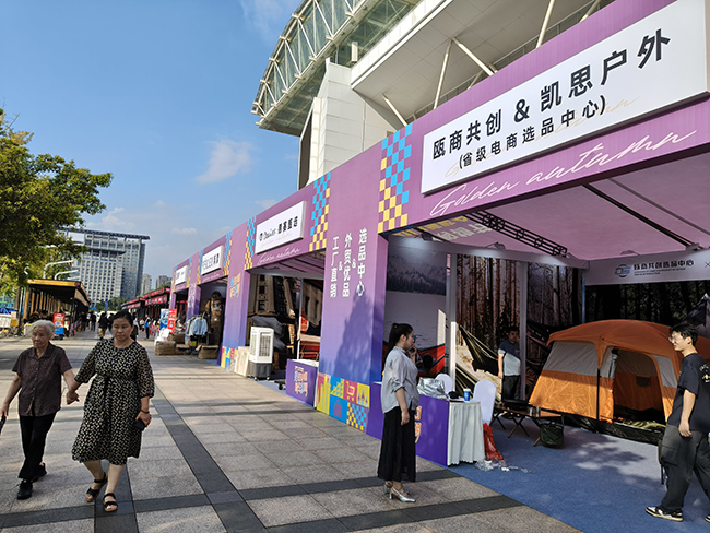 “瓯商共创×凯思户外”主题馆集结户外装备与食品产业,展现瓯海产业集群的协同创新力。瓯海以瓯商共创选品中心为纽带,依托本土制造业基础,正加速推动传统产业与新兴消费领域深度融合,本次主题馆正是这一战略的生动实践。“‘全国县域直播电商中心(村播学院)’兴道电商直播产业园团队将在主题馆开启直播,把参展的瓯海特色食品,比如鸭舌、悠享时的饼干糕点、绿鹿的榨菜等宣传出去。”瓯商共创选品中心负责人王雪介绍道。