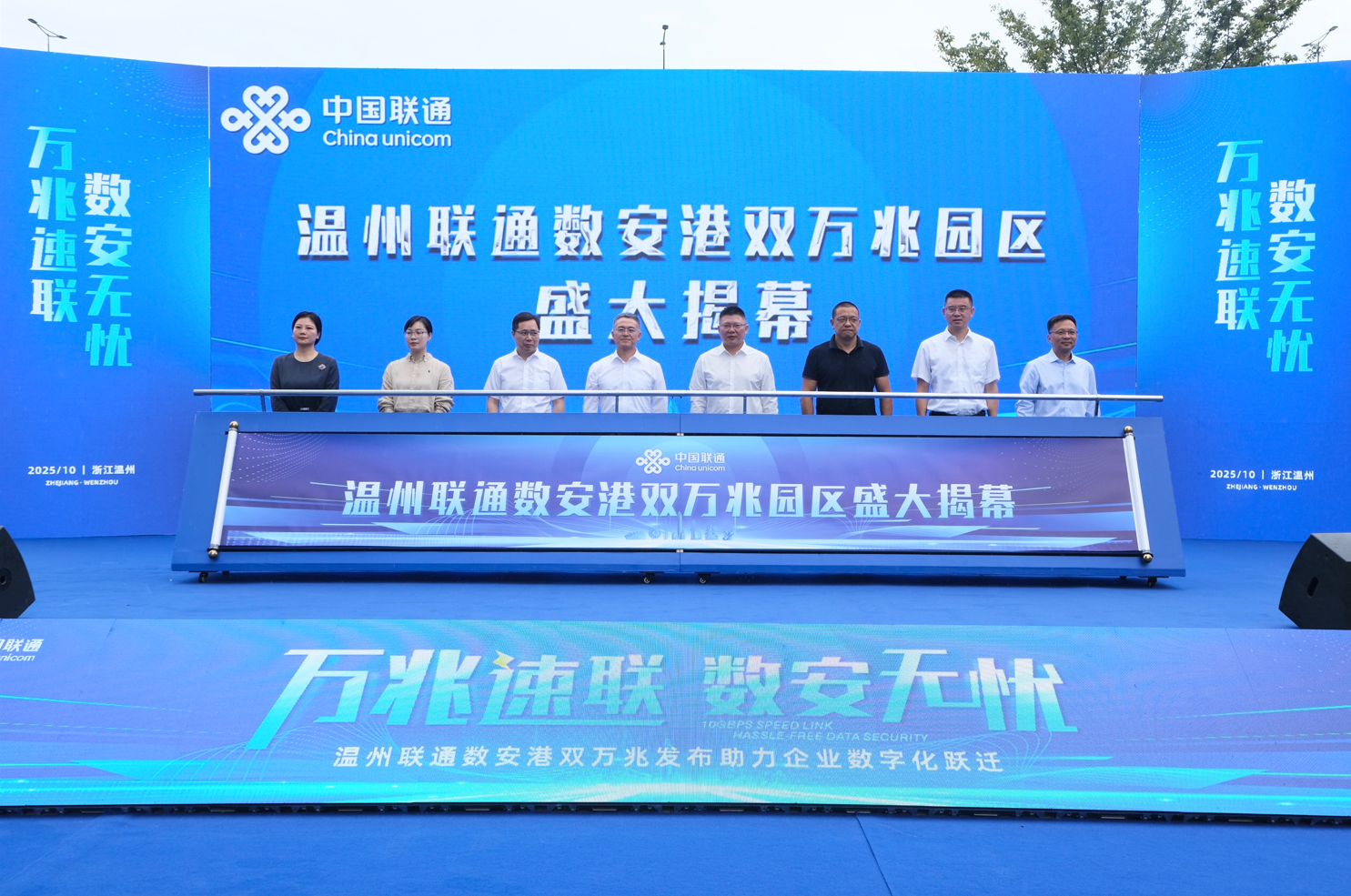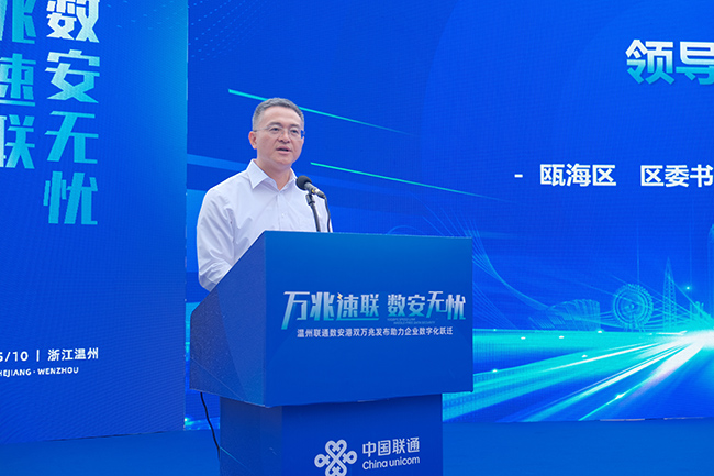 10月17日,“万兆速联数安无忧”温州联通数安港双万兆发布助力企业数字化跃迁活动在中国(温州)数安港举行。瓯海区领导刘云峰、林蔓、金海敏参加活动。
