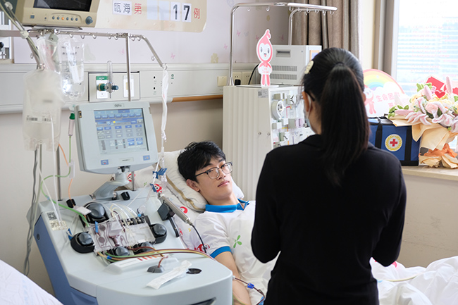 采集过程中,吕鑫始终保持着乐观的心态,眼神坚定:“我觉得作为一名医学生,捐献造血干细胞这件事是无上光荣的。我们学医的最终意义就是救死扶伤,现在能够帮助一个生命、一个家庭创造新希望,帮患者对抗血液病病魔,这份价值比任何成绩都更让我觉得有意义。”历经3小时左右,吕鑫成功捐献180毫升造血干细胞混悬液。