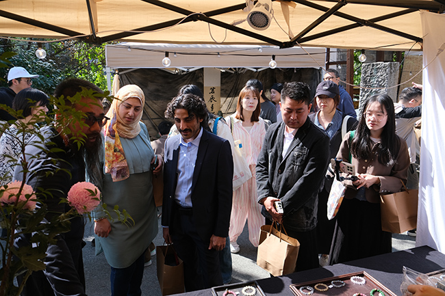 步入市集,主理人精心布置的摊位间,随处可见精美器物与手作,处处凝聚着独特的东方生活美学。“这是我第一次来温州,也是第一次参加这样大型的生活美学市集,我看到有许多精致的手工艺品,每一件作品的创作形式和审美表达方式,都能让我感受到这背后蕴含的中国民族文化因素。”来自埃及的开罗爱资哈尔大学中文系教师穆成功表示,青灯市集的包容性和文化多样性令他印象深刻,对于国际文化互鉴与深度交流具有重要意义。