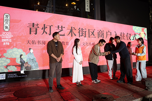 活动现场举行了青灯艺术街区首批入驻仪式。历经五年发展,青灯市集已累计吸引近8000家国内外品牌及主理人参与,并通过春秋两季大会逐步筛选出约200家优质商户落地实体。一期开放约六十个艺术主理人空间,目前已入驻东京森罗古美术、意大利老帕、杰书房、天佑书房、天赋教育、宽山集美堂、函堂、上海虫二斗友俱乐部、故宫出版、朴物良舍、万艺术空间等机构。