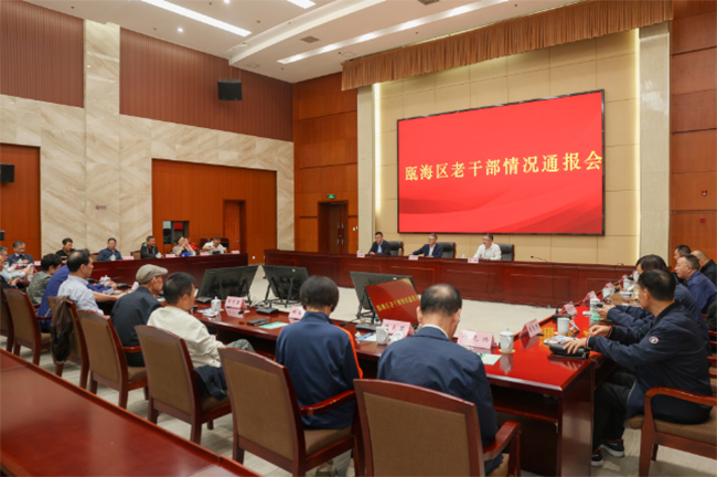 “大干城市地位、大干项目建设、大干创新瓯海、大干消费提振、大干民生服务……”现场,刘云峰向老干部通报了今年以来瓯海区经济社会发展情况和下步工作思路,从老旧工业区改造、重点项目推进,到优势产业转型、“一港一谷”建设,从新型消费场景培育、文旅活动开展,到教育领域创建、平安建设创新,既晾晒各项工作推进情况,也坦诚剖析短板不足,让老干部清晰了解瓯海发展全貌。