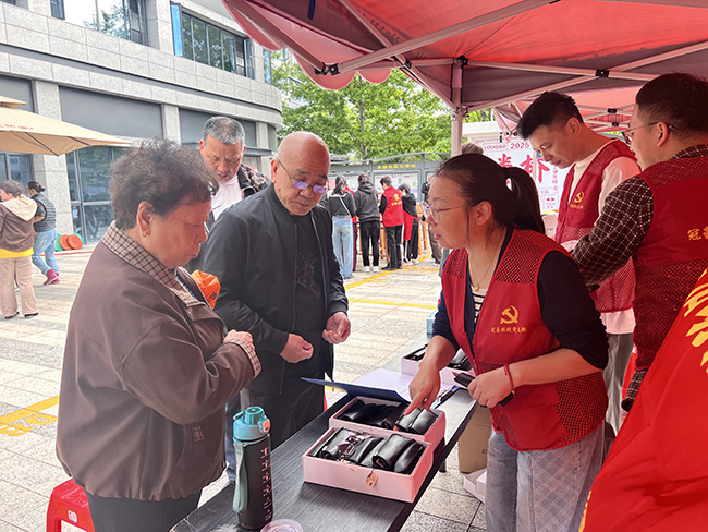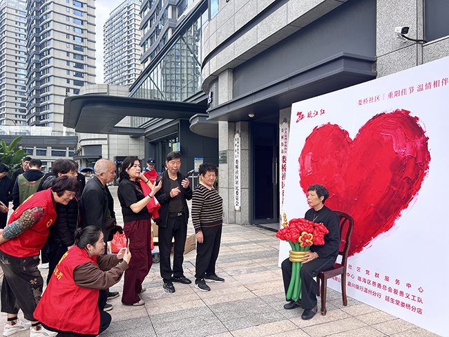 一旁的便民服务区同样暖意融融。维修师傅熟练地为居民修补衣物、鞋具和小家电,解决生活中的“小麻烦”;反诈宣传志愿者则通过案例讲解和手册发放,增强居民的防诈骗意识。活动现场还设置了拍照打卡区和趣味游戏区,不少老人手持捧花在镜头前留下温暖瞬间,现场打印的照片将美好时刻定格;扔沙包等互动游戏也吸引老少参与,欢声笑语不断。