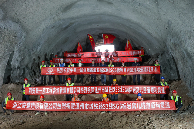 10月30日,温州市域铁路S3线SG6标段岩窝儿隧道顺利贯通,这是S3线首座贯通的隧道,标志着项目建设取得重大阶段性进展。