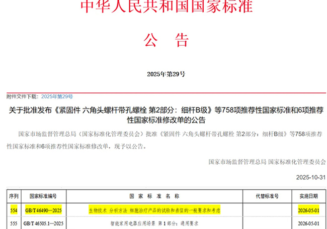 日前,国家市场监督管理总局(国家标准化管理委员会)发布公告,国家标准《生物技术分析方法细胞治疗产品的试验和表征的一般要求和考虑》(GB/T 46490-2025)正式批准发布,将于2026年5月1日起实施。该标准填补了国内细胞治疗产品试验与表征领域的标准空白,为行业规范化发展提供统一技术依据。该标准由位于瓯海区的佑仁细胞(浙江)有限公司为主要起草单位,公司董事长郑培朵博士担任主要起草人。