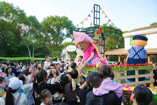 动物农场里,孩子们正在工作人员指导下喂食小羊羔。“这些动物经过专业驯化,特别温顺。”带着7岁儿子的游客赵建文告诉记者,“孩子刚开始有点害怕,现在都敢亲手喂胡萝卜了。”与此同时,芬妮&特恩大舞台前座无虚席,欢快的音乐声中,近百名小朋友跟着人偶一起跳舞,现场气氛热烈。