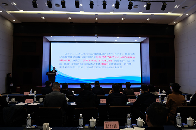 当天,白清元一行来到瓯海农商银行总部,听取电子营业执照在银行领域应用情况介绍。近年来,温州市市场监督管理局和瓯海农商银行率全国之先共同探索电子营业执照在银行领域的应用,擦亮“开户零次跑、放款半小时”金名片,以“市监+金融”的创新实践破解市场主体纯信用贷款融资难、融资贵、手续繁等问题。目前,该项应用已实现温州县域全覆盖。白清元指出,要继续深化探索,进一步拓宽应用场景,提升服务质效,将这张“金名片”擦得更亮,把这项惠企利民的好事办得更好、更实。