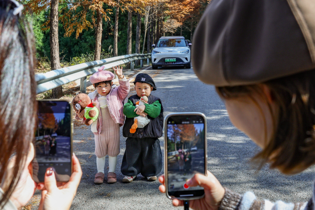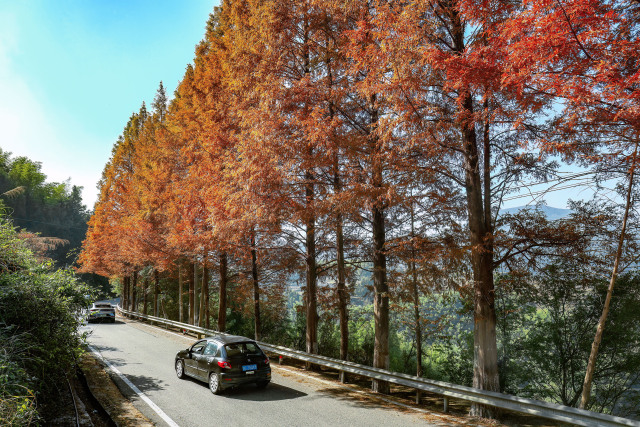 这条被誉为“温州最美红杉公路”的景观,其水杉多为上世纪八九十年代栽种的行道树,如今已成为一道亮丽的风景线。最佳观赏路段主要集中在陈北线、龙西线等区域,总计约22公里。赤橙黄绿的色彩与斑驳光影交织,宛如油画。游客们惬意随停,捕捉冬日的第一份浪漫,仿佛驶入了一个无需门票的天然影棚。