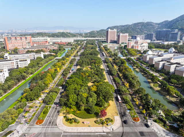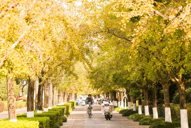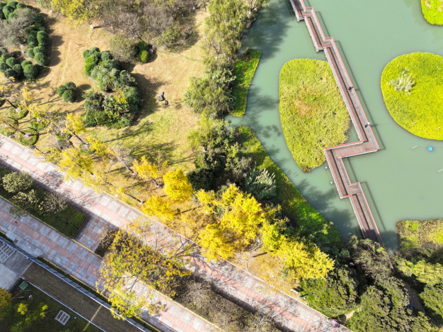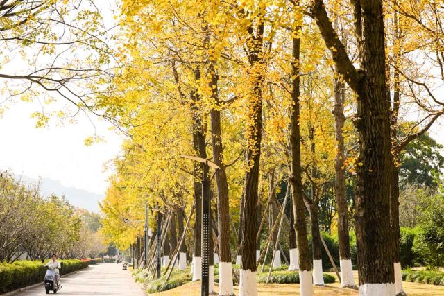 初冬时节,温州大学城的银杏树悄然披上“金装”,一幅幅流光溢彩的“金色画卷”正在学子广场、景观大道等处徐徐展开,进入最佳观赏期。金黄的叶子点缀出迷人画卷,吸引市民和游客驻足欣赏、拍照留念。