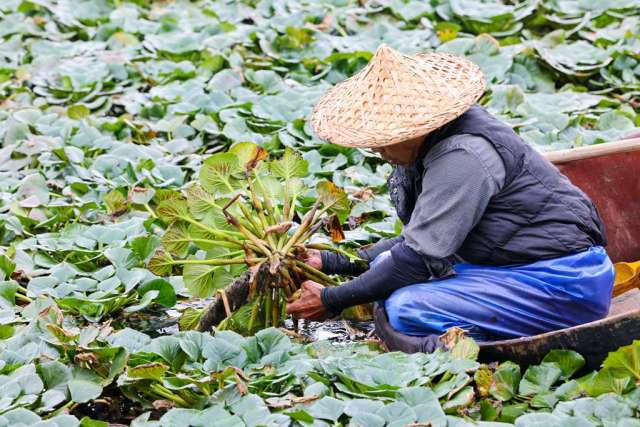 地处瓯海的“城市绿肺”三垟湿地,是全国罕有的紧邻大都市的河网圩田。湿地内水质清澈、土壤肥沃,造就了水稻、黄菱和瓯柑共生千年的农业场景。清澈河水的滋养出的菱角粉糯甘甜,连瓯柑也褪去了几分传统清苦。目前,三垟湿地有数百亩水稻田,“稻香小镇”被游客称为“打卡稻田最佳观赏点”。湿地内的瓯柑精品文化园,近年从300亩增至600亩,还划分了有核瓯柑生产基地、青皮瓯柑生产基地、柑橘类优质品种试点区等区域,既保证了品种多样性,又提升了景观效果。而菱角田围岛而建,已成为秋季的一道风景,近距离还原了种菱、采菱的传统耕作景象。前段时间,央视综合频道大型风物美食文旅节目《寻味山海》,聚焦湿地菱角的采收场景,将其视为温州秋日风物的代表。