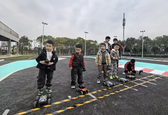 场景也在升级,刚开园一年的潮学园今年入选了省级“环境友好儿童友好”优秀实践案例。这个总占地面积超过3600平方米的项目,以“潮玩游乐+体能提升”为功能,约70%的面积都用来进行车模训练。潮学院里,来自温州森马协和学校车模社团的几位学生叽叽喳喳地讨论着:“我刚才车子的拐弯漂移酷不酷?”“嘿,我的上坡跃台技术和你有得一拼。”。
