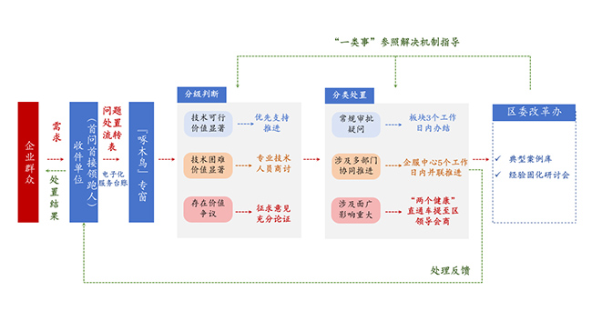 对于复杂问题,瓯海建立起一套清晰高效的“板块初审-中心会商-区领导议决”响应流程,针对新兴业态常规问题由板块3个工作日内办结,跨部门问题由企服中心5个工作日内并联推进,重大难题通过“两个健康”直通车提至区领导会商。自该机制实施以来,累计有43项久拖不决的“硬骨头”问题被成功破解。