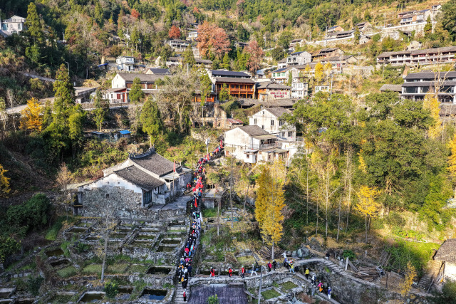 12月6日上午,2025“环浙万里行·登顶11峰”暨瓯海第十二届千人徒步活动在泽雅镇纸源村启动。活动以“杉燃‘浙’里,徒步泽雅最美冬韵线”为主题,吸引了来自温州及周边地区25个团队近千名户外爱好者参与。