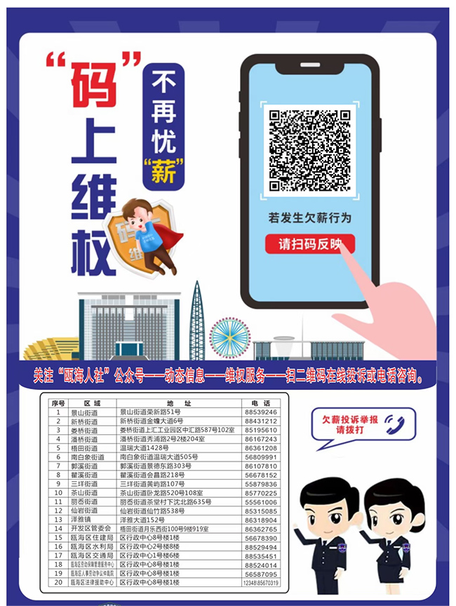 当劳动者自身劳动报酬权益受到侵害时,可通过“码”上维权在线扫码填写报送,或者即时拨打工作所在地劳动保障监察机构举报投诉电话,也可以就近到属地镇街寻求帮助。