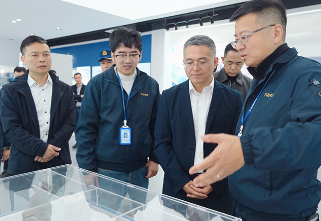 在兴机电器集团有限公司,省级智能工厂数字化车间、国内首家专业操作机构检测实验室以及机构装配车间、营销中心、企业展厅等场所,处处彰显着企业“自动、数字、智能、绿色”的发展理念。数字化车间内,智能化机器人工作站有序运转,半轴、铝丝杆、支架等零部件加工精准高效,机联网同步、设备稼动率实时监测、机器人协同控制等先进技术的深度应用,彻底颠覆了传统机加工生产模式,实现了生产效率与产品优质率的大幅提升。刘云峰一行边走边看,对企业在数字化、智能化转型方面的探索实践给予高度评价,认为其做法为制造业企业转型升级提供了典型示范。刘云峰要求,相关部门要加强与企业的沟通对接,系统梳理总结企业的成功经验和亮点做法,在全区范围内推广普及,助力更多瓯海企业打开转型思路、实现赋能升级。