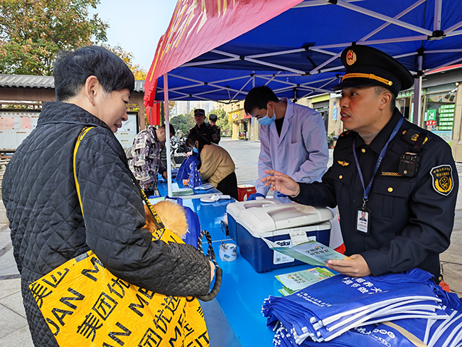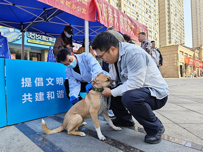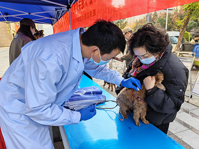 现场设立咨询台,审核身份证、免疫证明、犬只照片等材料,解答养犬居民办证疑问,指导居民填报申请材料。养犬管理服务中心工作人员还为符合条件的犬只办理犬证、植入电子芯片,同步完成狂犬病疫苗接种。工作人员还向养犬居民发放文明养犬礼包,宣传养犬管理条例。