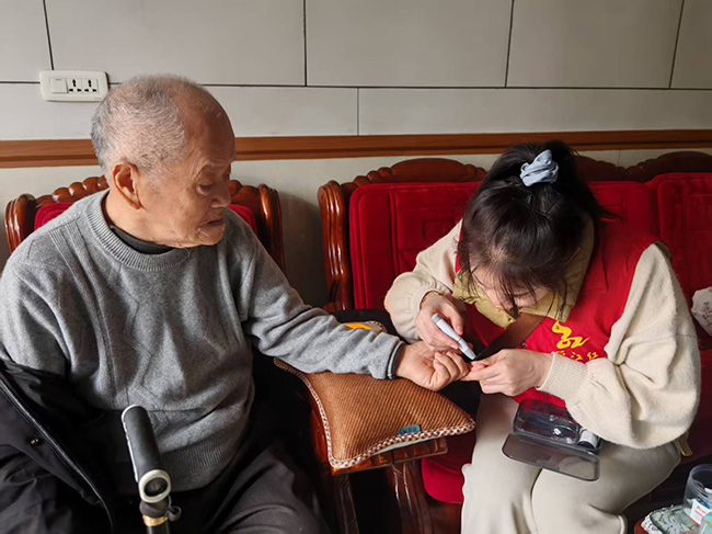 社工周慧对村里一对高龄夫妻印象深刻:91岁的阿公独自照顾85岁且患阿尔茨海默病十余年的阿婆。“我们每次来测血压、血糖、血脂,和他们聊聊天,查看用药情况,他们总是特别开心。”周慧说。通过“一人一策”的个性化探访与社区活动组织,项目不仅关注老人的身体健康,更注重给予情感陪伴和心理支持。