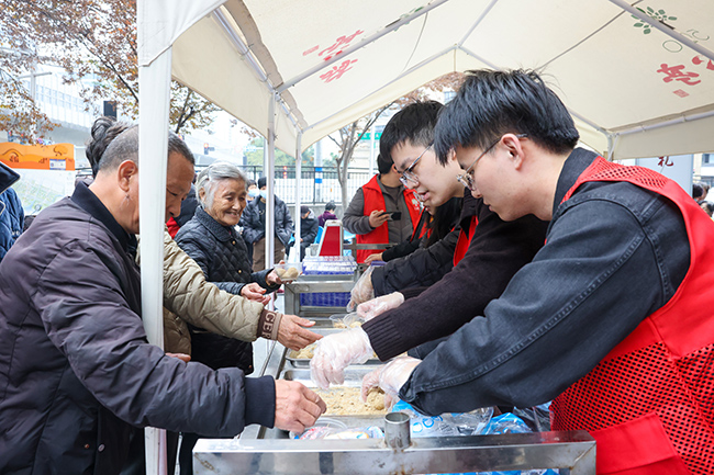 活动现场,志愿者们亲手蒸制、分装,将一份份香甜软糯、热气腾腾的麻糍,送给往来的社区居民以及环卫工人、快递小哥等群体。空气中弥漫的香甜与欢声笑语,共同构成了冬日里一幅温暖动人的画卷。