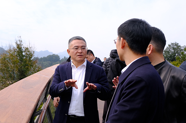 架空栈道“仙道”是温州园博园南园观景制高点。刘云峰一行沿栈道行走,俯瞰园博园及周边整体建设全貌,详细了解郭溪街道民俗文化综合体建设、第五立面整治、站西绿轴建设和横塘片花海填方等项目推进进度、节点安排及后续计划。放眼望去,经过系统性外立面改造、第五立面整治等园博园周边环境综合整治工程的推进,郭溪街道整体环境更显清爽整洁。刘云峰指出,要精益求精抓好细节打磨,全面开展查漏补缺,在环境整治中注重整体协调性与风貌统一性,持续提升城市颜值与品质内涵。要坚守生态优先理念,科学选配植被品种,合理规划种植布局,打造层次丰富、四季有景的特色绿色廊道,为群众打造高品质休闲游憩空间。