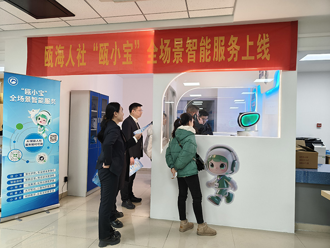 市民可通过“瓯海人社”公众号在线对话智能客服,随时随地咨询社保事项。针对社保咨询电话难接通、咨询高峰等待时间长等问题,瓯海部署智能座机实现基础业务咨询“快速响应、即时解答”。在社保服务大厅,该区引进AI机器人,它不仅可以进行语音交互、引导分流,还能协助办理社保记录打印等业务,提升大厅服务效率和体验感。另外,市民可在瓯海人社小程序在线计算退休年龄、查找周边社保网点,通过“瓯小宝”小课堂观看业务操作视频,实现“数据多跑路,群众少跑腿”。“我刚刚试用了一下,它会一次性把我想了解的政策的相关信息都告诉我,很直观,非常方便,办事效率也提高很多。”市民徐女士点赞道。