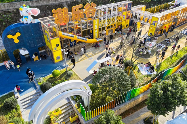 “以前这片荒地上杂草比人还高,现在成了孩子家门口的游乐场,每天放学后都要过来玩下。”景山街道居民王松花女士站在潮乐谷儿童乐园门口,看着正在攀爬网里嬉戏的儿子,言语间满是欣喜。作为国家首批儿童友好城市建设中央资金补助项目,潮乐谷是瓯海“十四五”期间片区式开发的典型代表,项目总占地面积3645平方米,投入约630万元,将闲置山边荒地改造为集潮流趣玩、体能提升于一体的全龄友好空间,与周边景山小学、儿童公园串联成儿童友好示范片区,成为网红遛娃地。