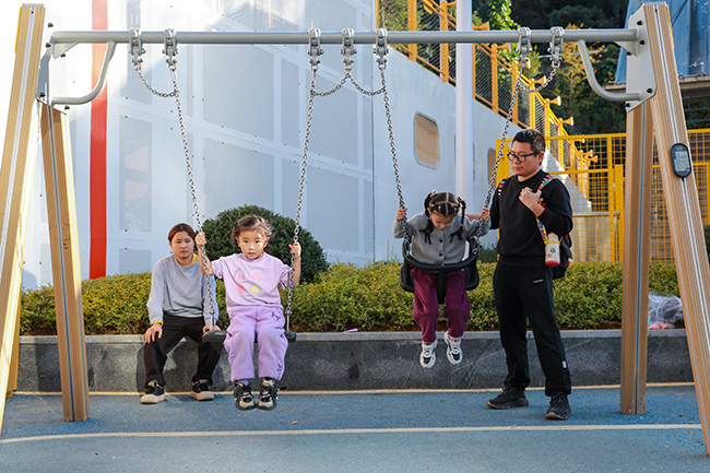 这样的空间蝶变,在瓯海并非个例。“十四五”期间,瓯海累计争取中央补助资金1000万元,高质量完成首批儿童友好中央资金补助“十大项目”,打造5 个儿童友好主题公园,完成4个老旧小区适儿化改造,建成44处家长等候区、1条儿童友好滨水欢乐带和1 条儿童友好游乐街巷,形成覆盖全域的儿童友好空间体系,相关做法连续两年写入《中国儿童友好城市发展报告》及省“十佳”实践案例。半塘公园“松鼠探险园”就是其中的典型代表。该项目投入239万元,改造面积超1公顷,将自然野趣与游乐设施巧妙融合,按年龄段设置主题区域,其改造经验入选国家《城市儿童友好城市建设可复制经验清单(第一批)》,成为全国示范样本。“这种社区公园能做到这样已经不错了,周边很多小朋友都爱来这里玩,特别是周末。”住在周边的市民梅建辉经常带儿子来这里,对改造效果赞不绝口。