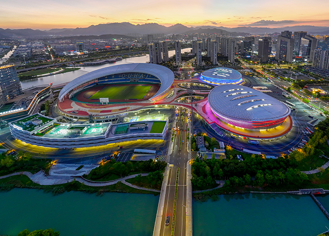 2023年,杭州亚运会龙舟赛事落户瓯海,以此为契机,瓯海布局建设“一场二馆一水上中心”(足球场、篮球馆、游泳馆、龙舟运动中心),填补辖区大型体育场馆空白。与此同时,场馆附近原有的旧村旧厂房被一个个公园,一栋栋现代化楼宇、一条条崭新道路所取代。并且场馆在亚运赛后不但成功举办国际、全国级各类赛事、会议以及文娱活动百余场,更成为全民健身与休闲、研学、商贸活动等热门场所,有效带动周边餐饮、住宿、娱乐等产业协同发展。在瓯海中心区创业的浙江特尔龙建设科技股份有限公司董事长方义华对此深有感触,“对我们这些来瓯创业的新瓯海人来说,这里不仅宜业还很宜居,各类配套不比市中心差,周末陪家人逛逛周边的商场或是到公园露营,幸福感满满。”
