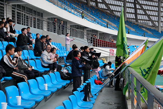 赛场上球员奋勇拼搏,看台上的球迷助威同样自成亮点。上半场比拼陷入白热化时,郭溪队支持者自发组织起助威阵营,鼓声阵阵中,球迷们齐声喊出加油口号,有节奏地振拳呐喊。更有4位小球迷手持喇叭,全程不间断地为球队呐喊鼓劲。炽热的支持让球员们备受鼓舞,获胜后他们第一时间走向看台,高举双手鼓掌向球迷们致谢,以真挚回应这份双向奔赴的热爱。“看到自家球队赢球,就像自己赢了一样!”小球迷林奕宏激动地说。