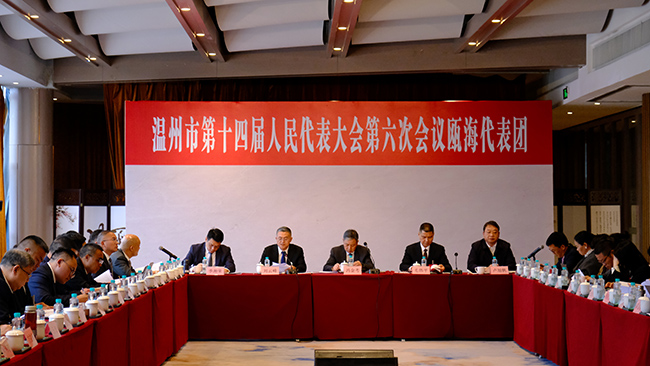 1月20日下午,出席市十四届人大六次会议的瓯海代表团全体代表认真审议市政府工作报告、市“十五五”规划纲要草案和计划、预算报告。市、区领导冯金考、毛伟平、刘云峰、季湘荣、卢旭帆等参加审议。
