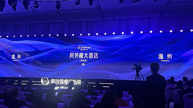 1月27日,2026黑珍珠餐厅指南正式发布,瓯海区的阿外楼大酒店(南站店)成功蝉联黑珍珠一钻餐厅,阿外楼招牌江蟹生入选黑珍珠年度菜品。阿外楼继2025年成为全市首批上榜黑珍珠的餐饮品牌后,再度以硬核品质站稳中国高端餐饮舞台,这一成绩是企业深耕瓯菜传承与创新的硕果,也是瓯海持续优化餐饮产业营商环境、推动本地美食文化出圈的生动体现。