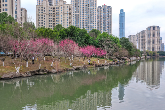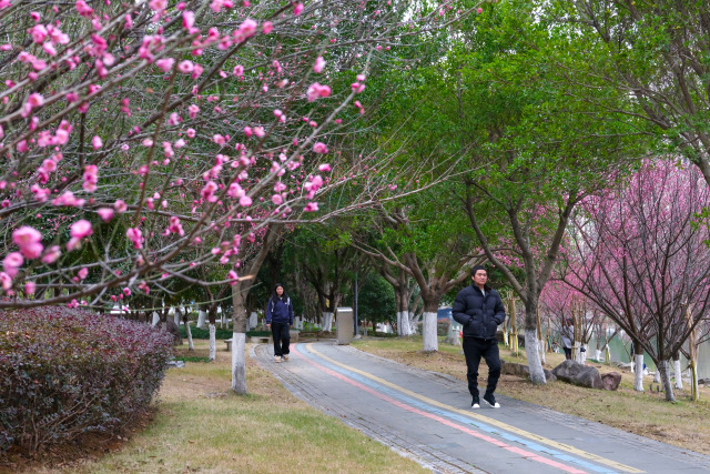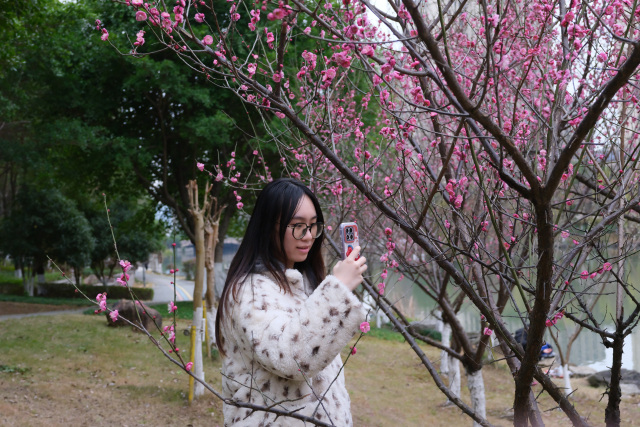 连日来,瓯海区娄桥街道沉木桥河滨水公园内,梅花正悄然绽放。沿河岸边绯红花海如霞,朵朵梅花缀满枝头,花瓣层叠舒展,在风中摇曳生姿,尽显"岁寒三友"之首的清逸风骨。此时节虽未入春,已有市民们或驻足细嗅暗香,或举起镜头捕捉"俏梅报春"的动人瞬间。红梅初绽,既传递着"春信将至"的吉祥寓意,又让踏春者在绯红中定格美好,共绘这幅冬日的生机序曲。