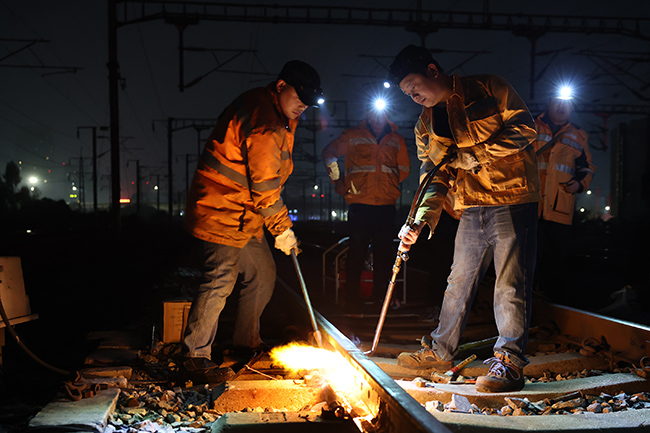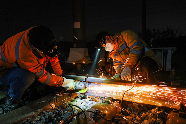 由于铁路温州南站有动卧通过,春运首日的天窗维修被安排在2月3日凌晨2:30。此时夜色正浓,万籁俱寂,22岁的雷槟槟已在工长带领下,抵达温州南站I道,准备利用仅有的3个小时天窗时间,更换一处不良绝缘接头——这是春运前夕车间排查出的设备隐患“头号任务”。