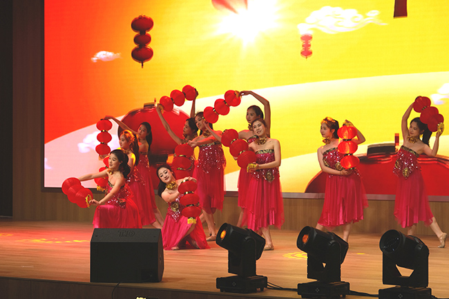 演出在舞蹈《欢天喜地迎新年》的欢快节奏中拉开序幕,配乐诗朗诵《新年你好》、越剧选段《新梁祝·思祝下山》、鼓词《千年商港数温州》等13个节目轮番上演,魔术《魔鸽魅影》与杂技《蹬缸》更以奇幻互动与高难技巧,迅速点燃现场氛围,使现场300名观众欢呼不已、掌声迭起。值得一提的是,森马员工也主动登台献艺,与专业演员共同呈现精彩节目,展现出文艺进企业、职工齐参与的共创共享氛围。