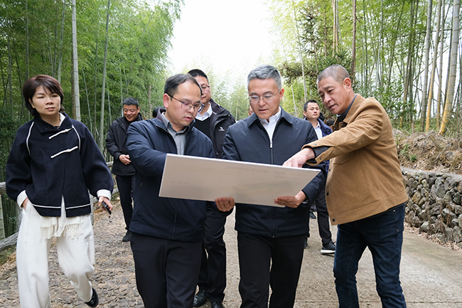 在泽雅镇胡坦村,刘云峰实地走访马鞍岩地块。这里群山叠翠,成片竹海依山而铺,既有原生态山区的清幽秀美,也保留着浙南红色革命遗址——马鞍岩革命交通站。该地块拟打造综合性文化旅游度假村,融合红色旅游、生态农业、文化艺术等多元业态,助力当地盘活生态资源、拓宽增收渠道。刘云峰一行详细了解地块规划、项目筹备及后续推进计划,他指出,要主动靠前服务,有序推进地块土地等要素保障,尽快启动相关工作,确保项目早日落地见效,以产业发展带动村民增收。
